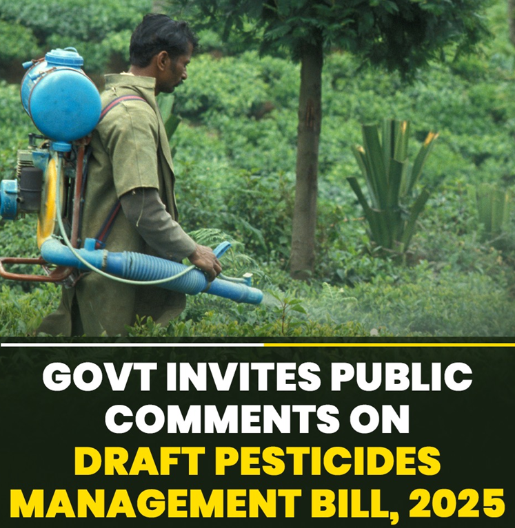 - The Union Ministry of Agriculture and Farmers Welfare released the Draft Pesticides Management Bill, 2025.
