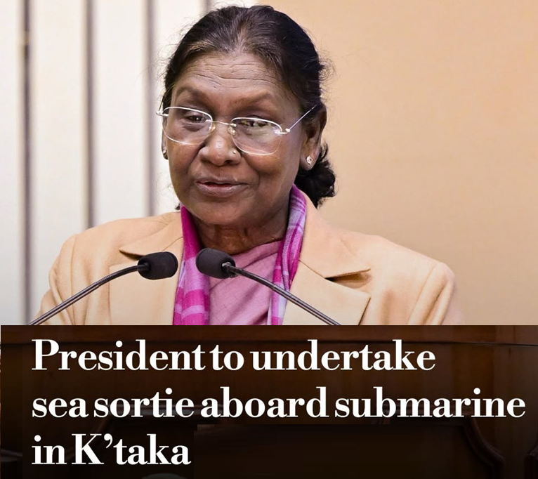 - President Droupadi Murmu undertook a submarine sea sortie from Karwar Harbour, Karnataka.