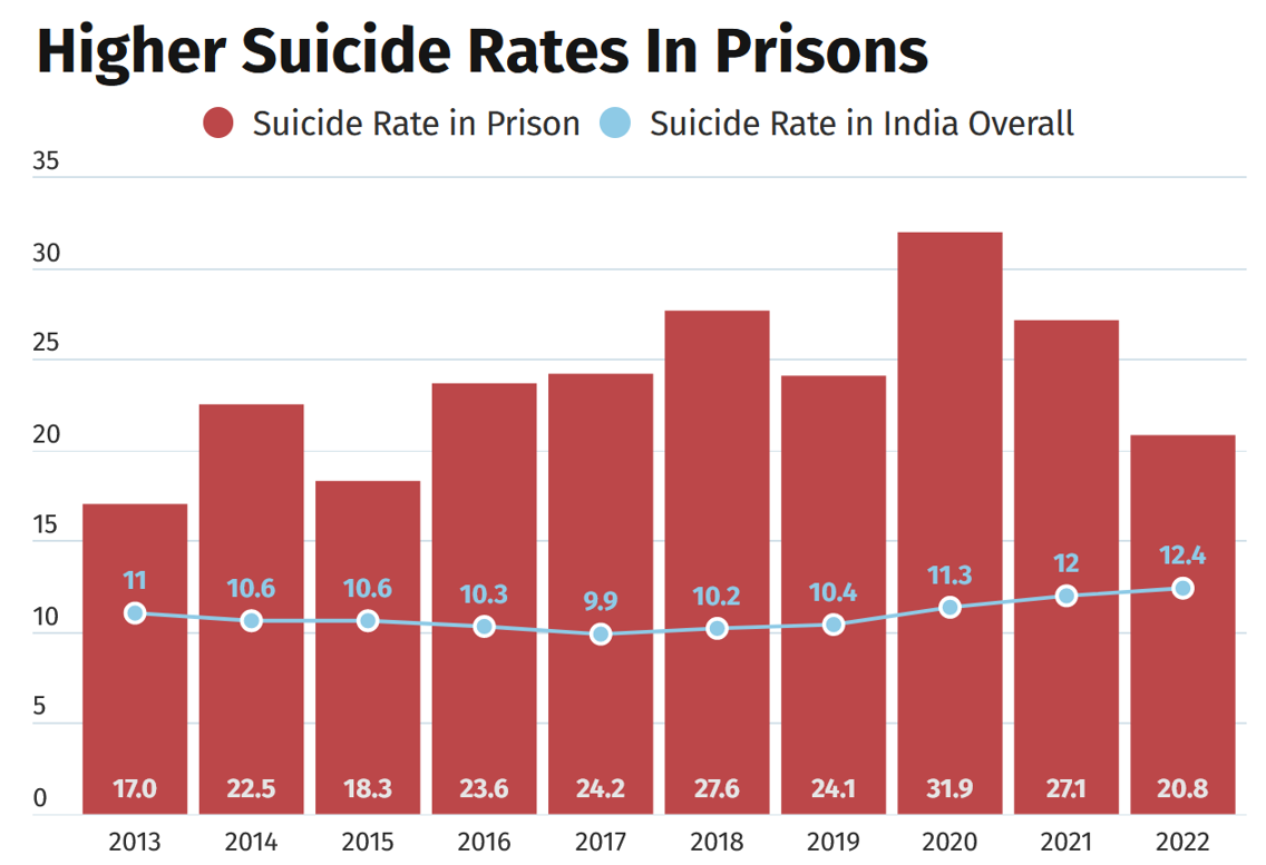 - It was showing India's prison population dropped from 5,73,220 in 2022 to 5,30,333 in 2023.