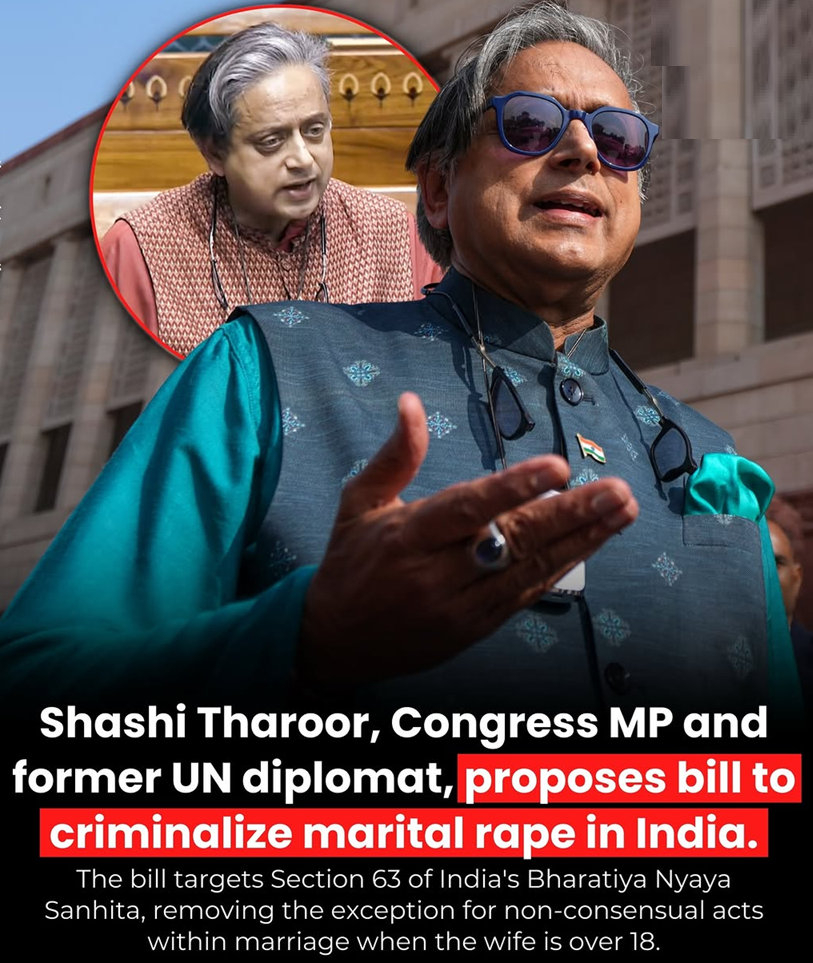 Congress MP Shashi Tharoor has recently introduced a private member’s Bill in the Lok Sabha to remove the marital rape exception in criminal law.