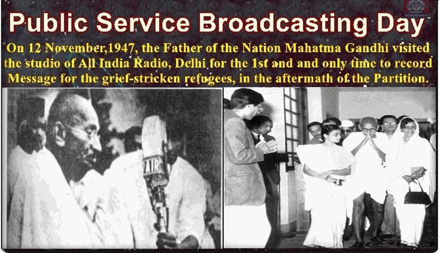 - The observance commemorates M.K Gandhi’s first and only live broadcast on All India Radio on 12 November 1947.