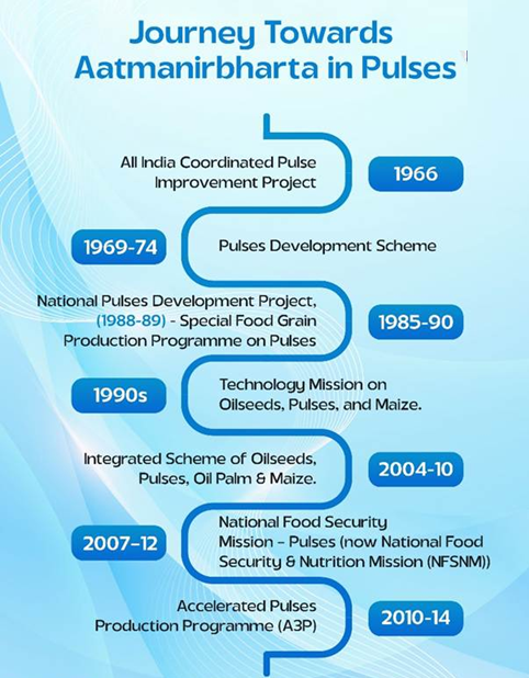 - The mission aims to increase domestic pulses production to 350 lakh tonnes and expand cultivation area to 310 lakh hectares by 2030–31.