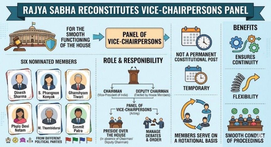 Rajya Sabha has reconstituted its Panel of Vice-Chairpersons, for the smooth functioning of the House.