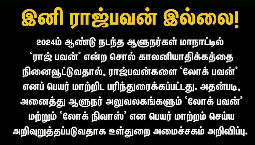 - It also suggested renaming Raj Niwas (the Lieutenant Governor’s residence) as Lok Niwas.