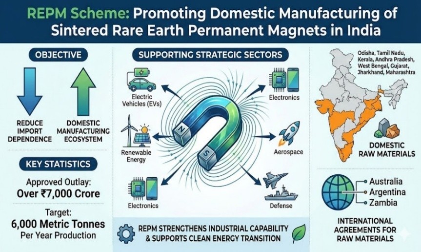 The REPM scheme strengthens India’s domestic industrial capability and supports the clean energy transition.