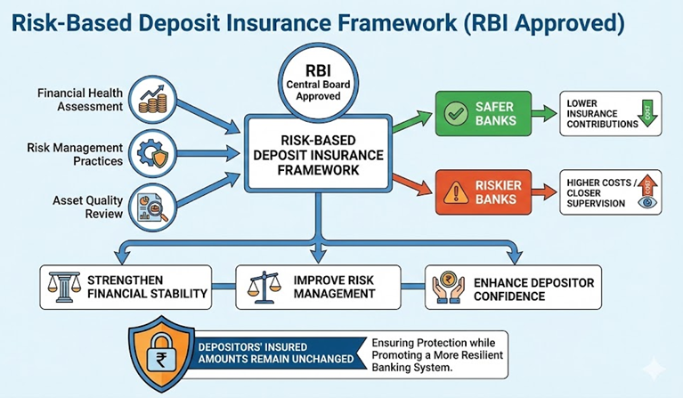 - The RBI Central Board approved a risk-based deposit insurance framework for banks.