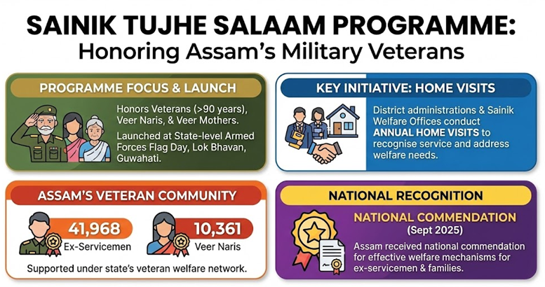 Assam launched the programme to honour military veterans above 90 years, Veer Naris, and Veer Mothers on Armed Forces Flag Day.