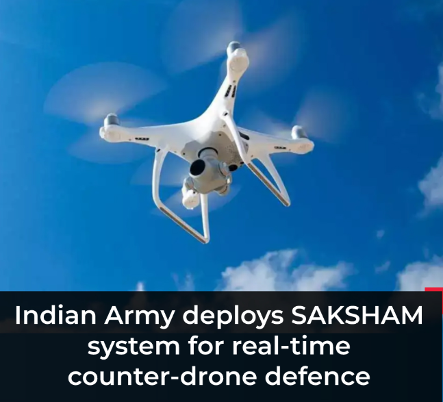 The Indian Army has inducted the indigenous Saksham Counter-Unmanned Aerial System (CUAS) Grid System for real-time drone threat neutralisation.