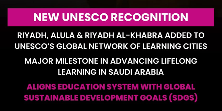 - The UNESCO has added Riyadh, AlUla, and Riyadh Al-Khabra to the Global Network of Learning Cities (GNLC).