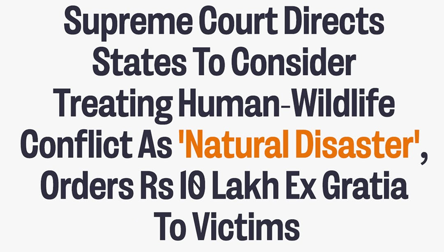 • The Court ordered states to treat Human–human-wildlife conflicts as a natural disaster to enable rapid relief measures.