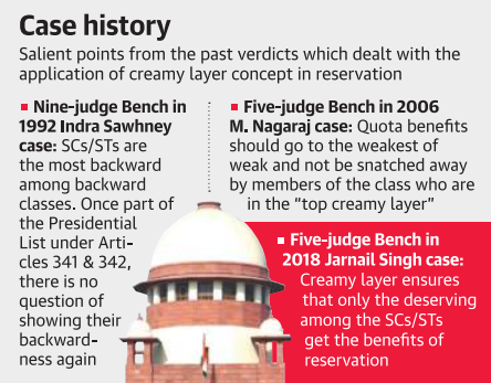 • Following the landmark 1992 SC ruling in Indra Sawhney vs Union of India, also known as the Mandal verdict, the concept of ‘creamy layer’ within the OBCs was introduced.
