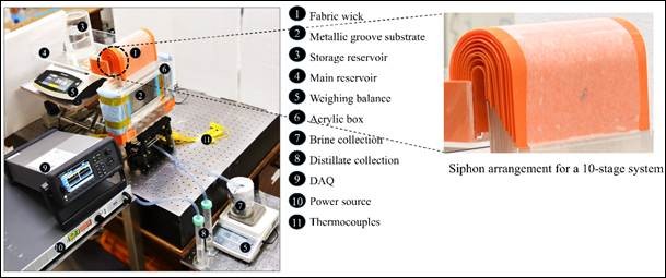 - The Scientists at the Indian Institute of Science (IISc) developed a siphon-based thermal desalination system using fabric wicks and metal surfaces.