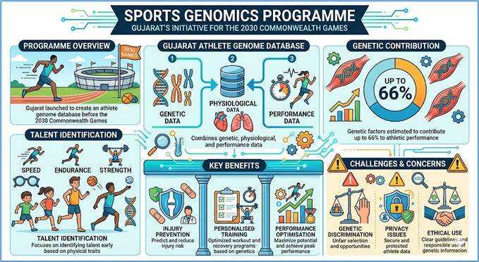 - The programme aims to build a Gujarat Athlete Genome Database combining genetic, physiological, and performance data.