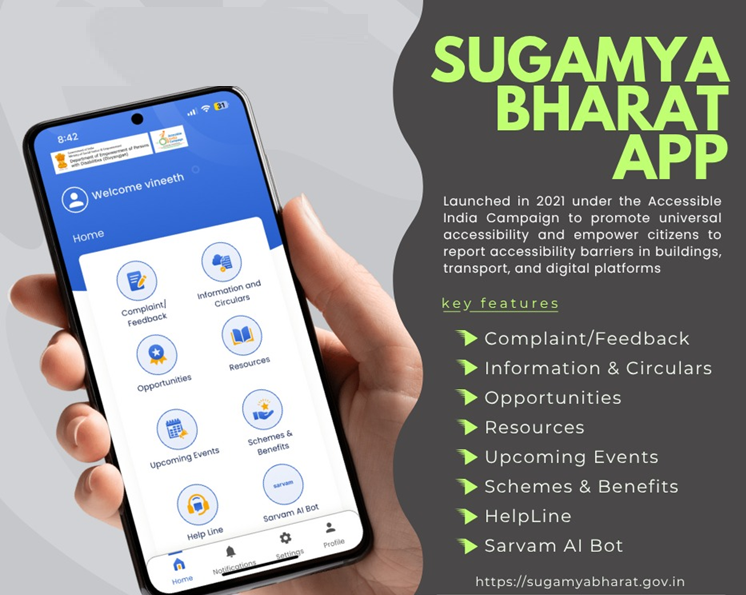 - The government has launched a revamped version of the Sugamya Bharat App to enhance accessibility for Divyangjan and elderly citizens.