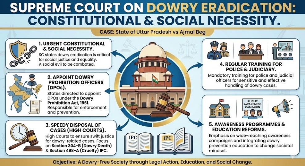 The Supreme Court said that dowry eradication is an urgent constitutional and social necessity.