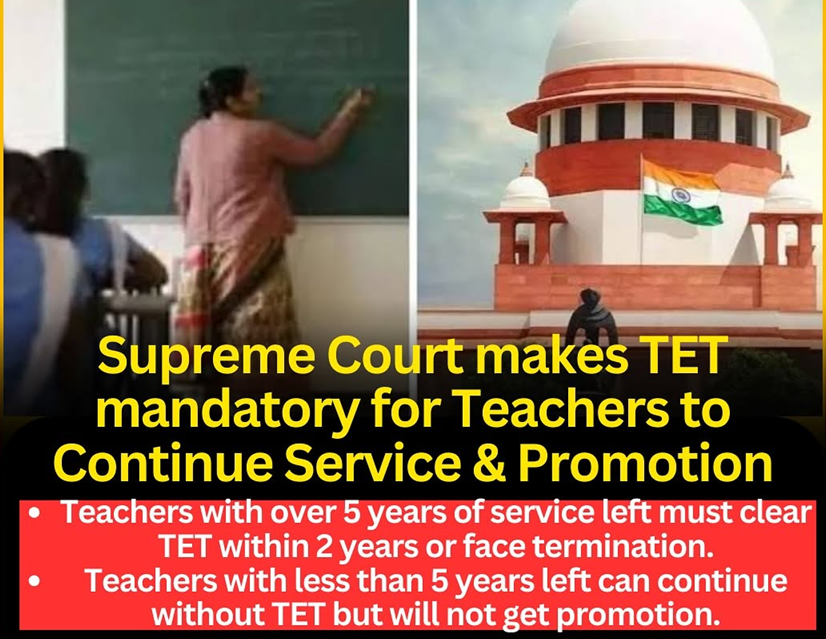 It has directed that teachers across the country with more than five years of service left must pass the TET in two years.
