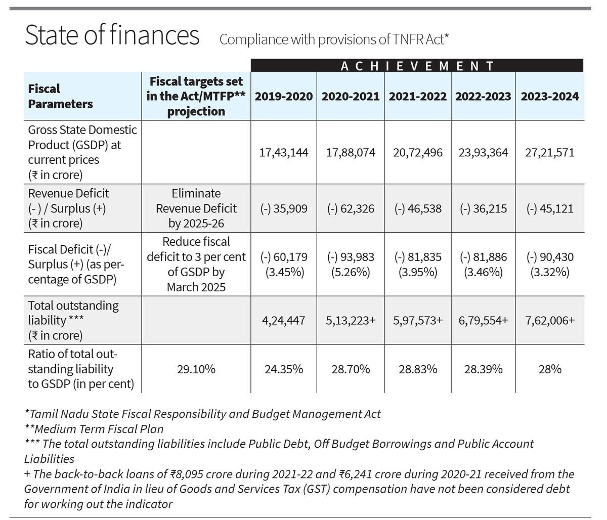 - It was “much higher” than the target fixed under the Tamil Nadu State Fiscal Responsibility and Budget Management Act.