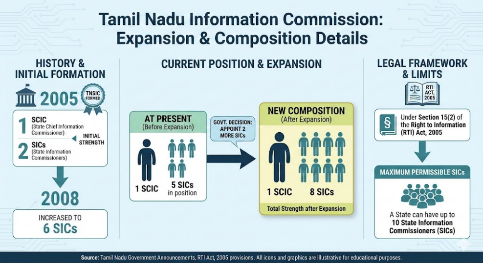 - The Tamil Nadu Government has decided to appoint two more State Information Commissioners in the Tamil Nadu Information Commission.