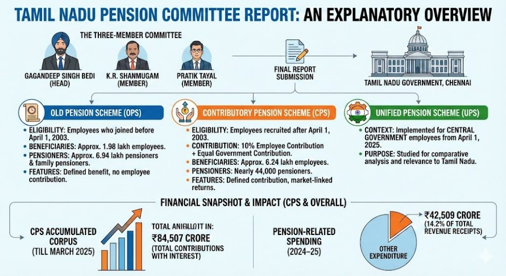 The committee studied the Old Pension Scheme (OPS), the Contributory Pension Scheme (CPS), and the Unified Pension Scheme (UPS) implemented for Central government employees from April 1, 2025.