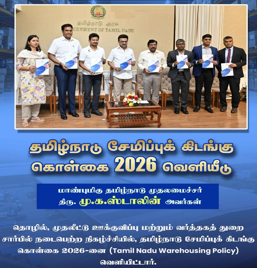 The Chief Minister of Tamil Nadu released the Tamil Nadu Warehousing Policy, 2026, in Chennai.