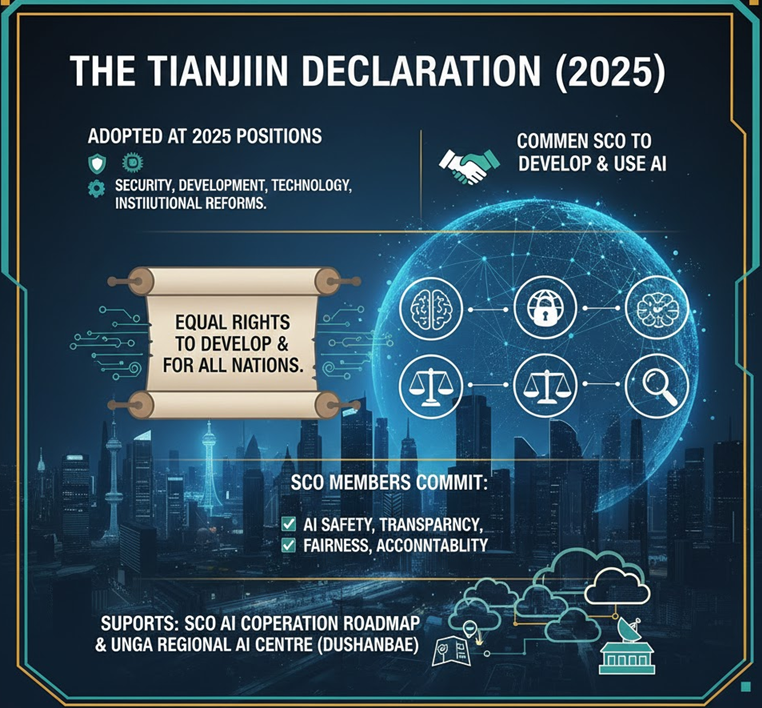 - It supports the SCO AI Cooperation Roadmap and a United Nations General Assembly (UNGA) proposal for a Regional AI Centre in Dushanbe.