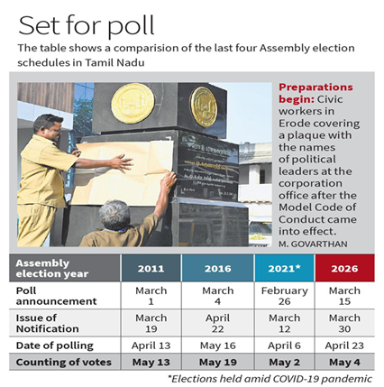 With the announcement of the Tamil Nadu Assembly election schedule on March 15, political parties will get a 38-day window to undertake campaigning.
