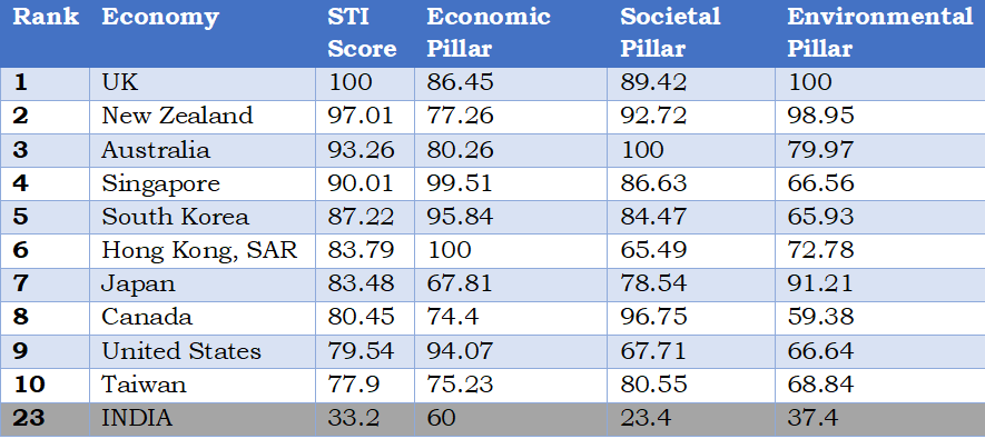 India secured an overall rank of 23, with a combined score of 33.2 out of 100.