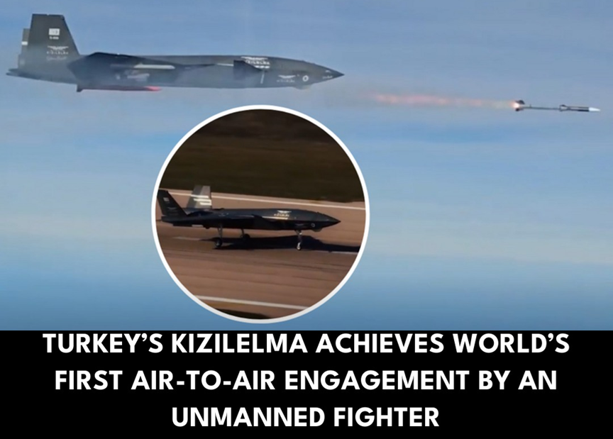 - Turkey’s Kızılelma unmanned aerial vehicle (UAV) became the world’s first drone to shoot down an aircraft using a beyond-visual-range (BVR) missile.