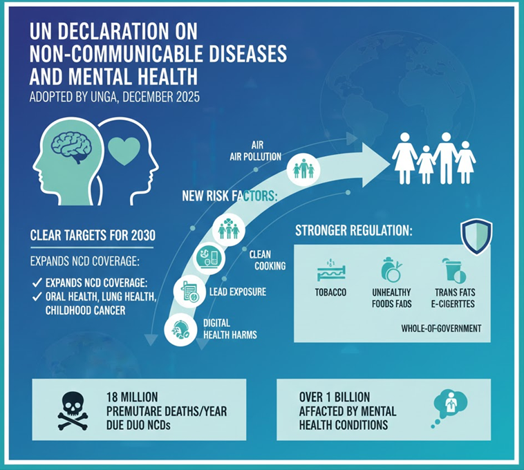 The declaration sets clear targets for 2030 and expands NCD coverage to areas like oral health, lung health, and childhood cancer.