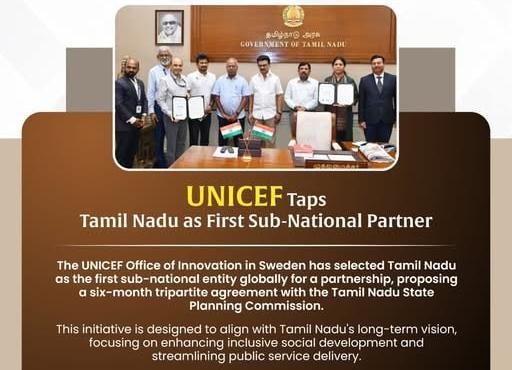 - UNICEF has signed a landmark partnership with the Government of Tamil Nadu as its first-ever sub-national government partner globally.