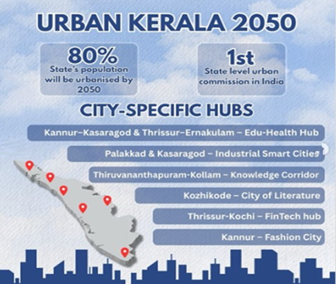 - According to the commission, about 80% of Kerala is expected to be urbanised by 2050.