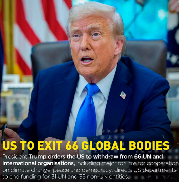 The United States announced its withdrawal from 66 international organisations under the Trump administration.