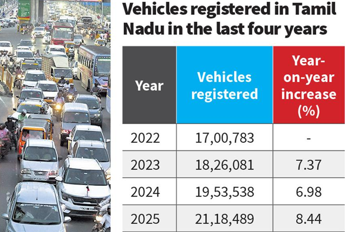 - Vehicle registrations in Tamil Nadu increased by 8.4% in 2025 compared to the previous year.