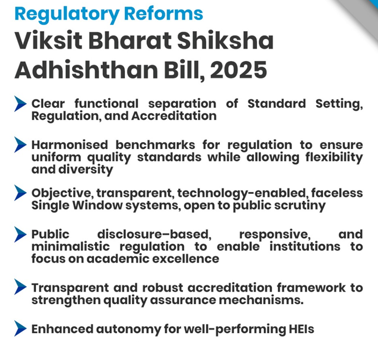 - The Viksit Bharat Shiksha Adhishtan Bill proposes a single regulator for higher education in India.