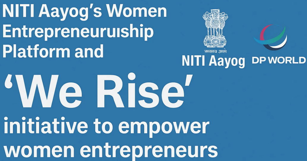 - NITI Aayog’s Women Entrepreneurship Platform (WEP) and DP World launched ‘We Rise’ to empower women entrepreneurs.