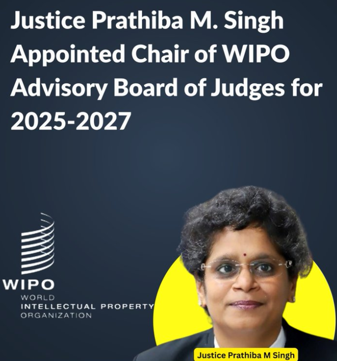 Justice Prathiba M. Singh of the Delhi High Court has been appointed chairperson of the World Intellectual Property Organization (WIPO) Advisory Board of Judges for the 2025–2027 term.