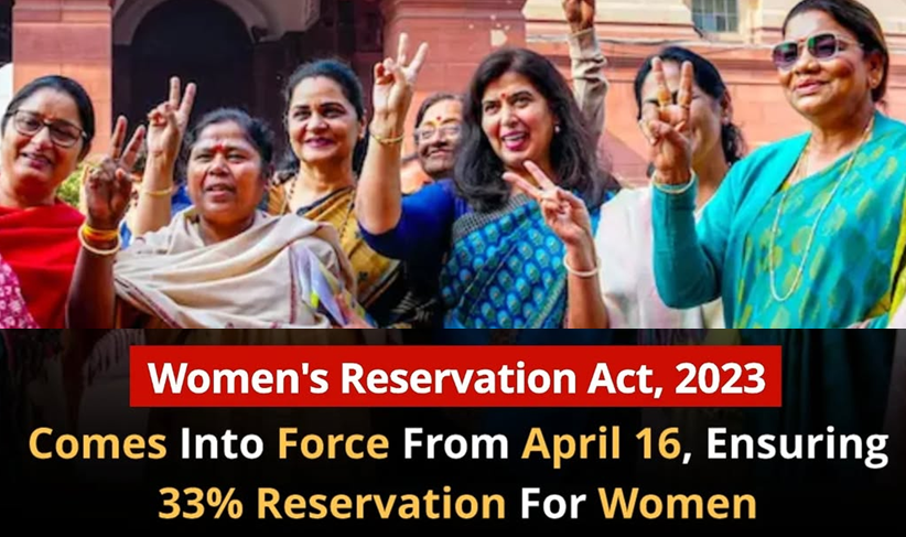 - Nari Shakti Vandan Adhiniyam 2023 was brought into force by the Central Government from April 16, 2026.
