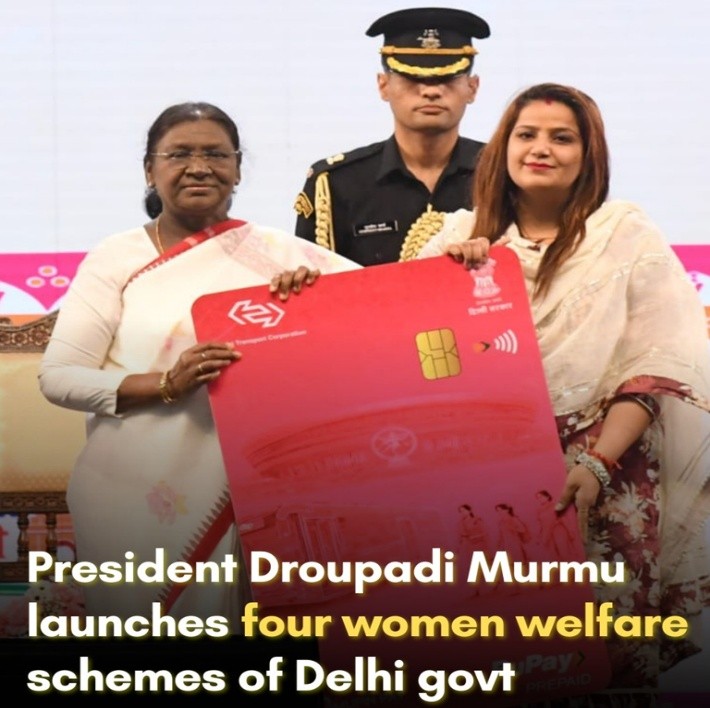 - The president of India, has launched four women's welfare schemes of the Delhi Government in New Delhi.