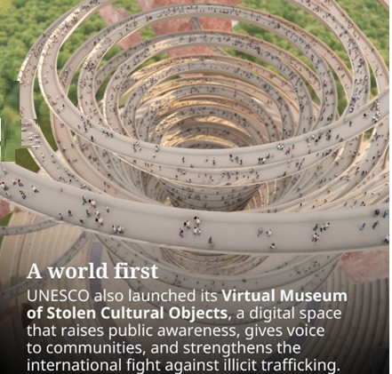 - The UNESCO has launched the world’s first Virtual Museum of Stolen Cultural Objects.