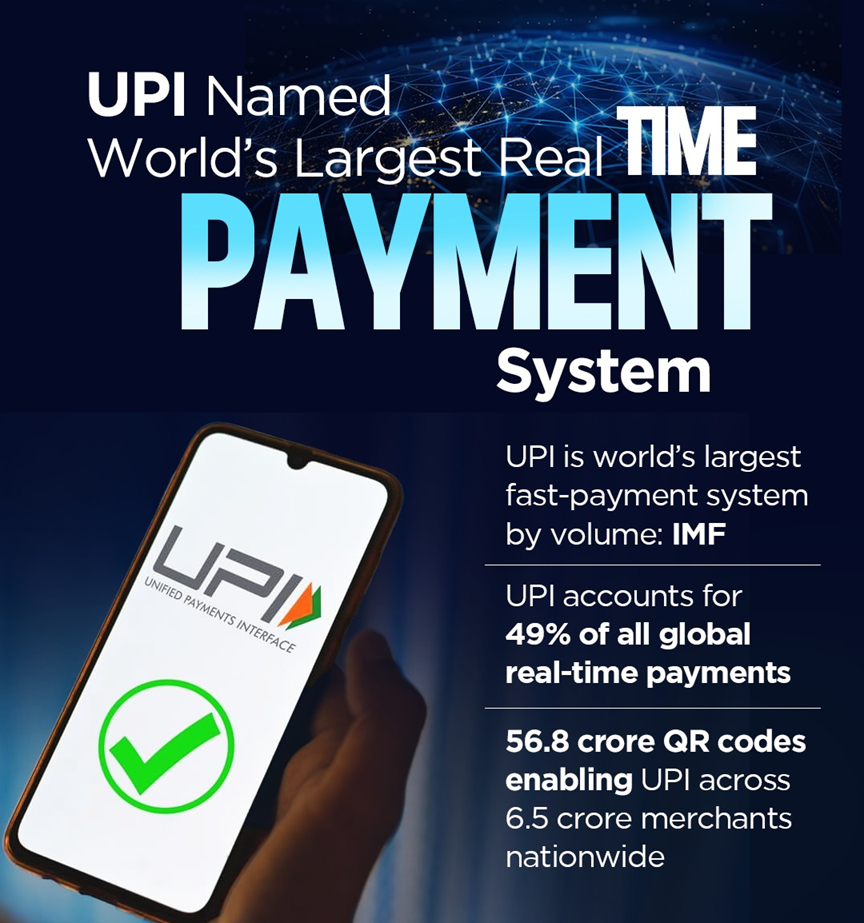 India’s UPI is recognized by the International Monetary Fund (IMF) as the world’s largest retail fast-payment system by transaction volume.