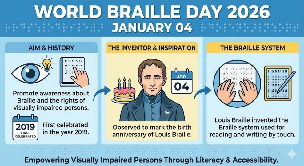 - The day is observed because it marks the birth anniversary of Louis Braille.