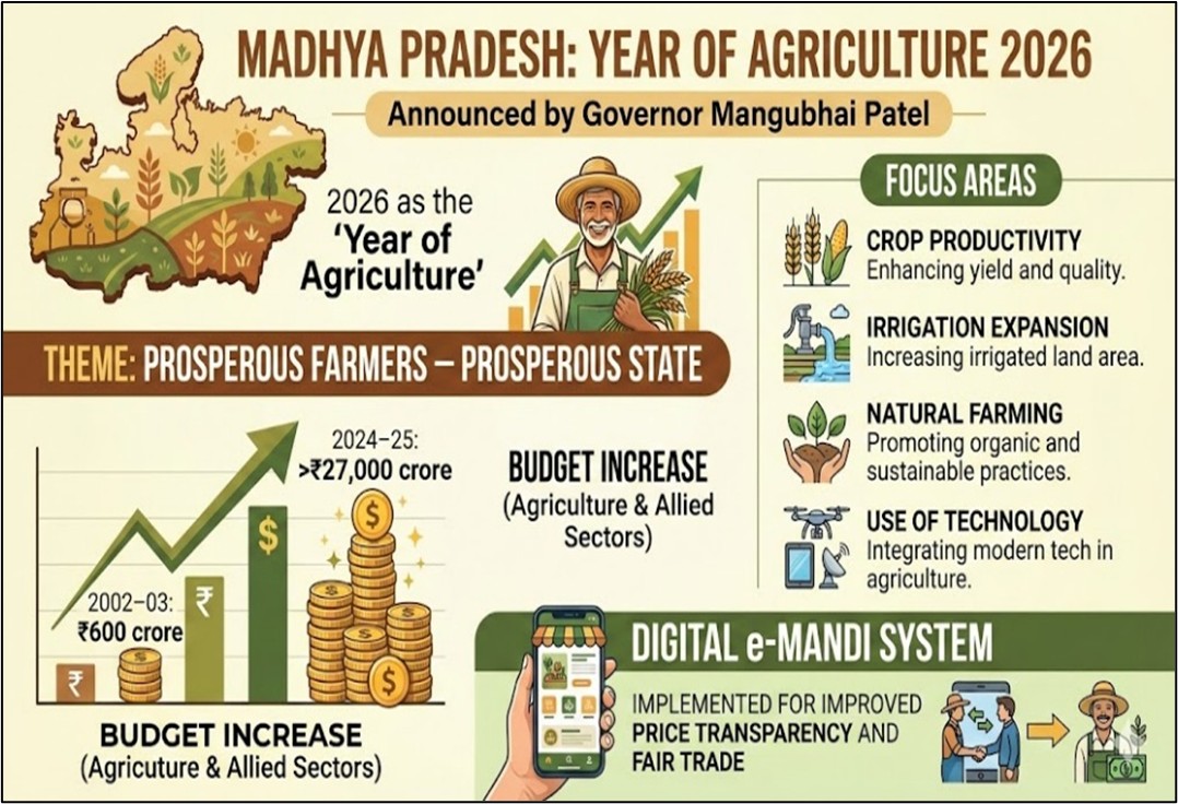 - Madhya Pradesh will observe 2026 as the ‘Year of Agriculture’.
