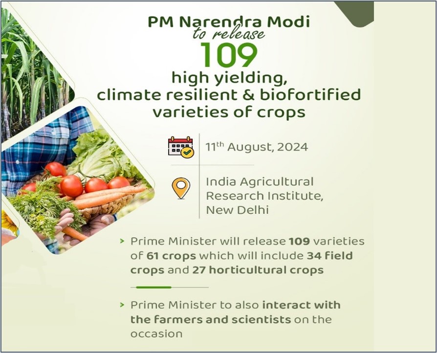 The 109 varieties of 61 crops released by the Prime Minister includes 34 field crops and 27 horticultural crops.