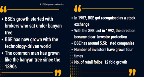 - The BSE Ltd, Asia's oldest stock exchange, has celebrated its 150th anniversary recently.