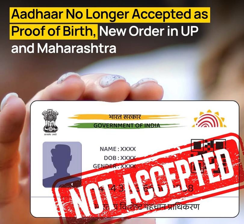 • The governments of Uttar Pradesh and Maharashtra have instructed all departments to stop using Aadhaar as proof of birth.