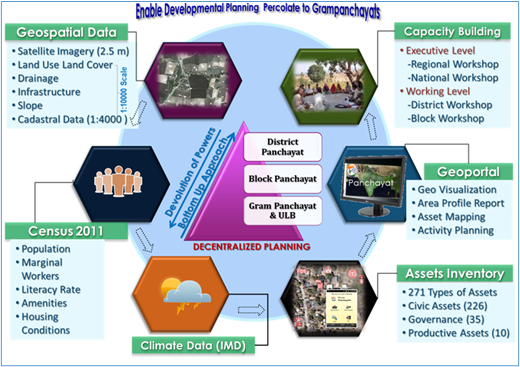 The ‘Bhuvan Panchayat Portal’ provides “Space based Information Support for Decentralized Planning (SISDP)” and empower the citizens at the grass root level in Panchayats’.