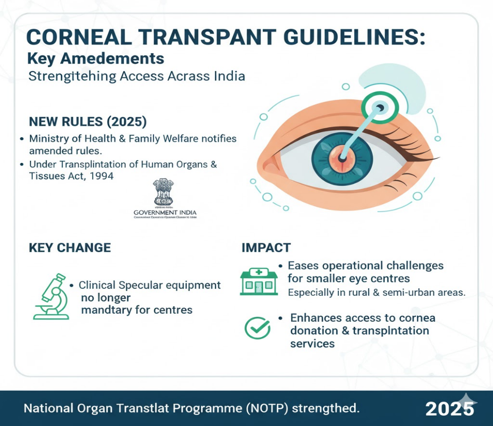 - The amendment is intended to enhance access to cornea donation and transplantation services across India.