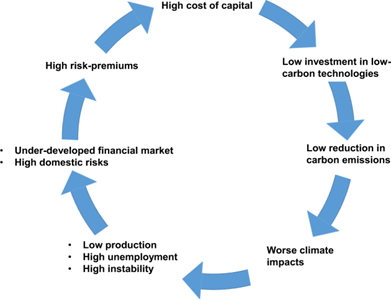 • Poor countries with heavy debts have been forced to continue to rely on fossil fuels for generating revenue to return the loans taken from richer countries and private lenders.