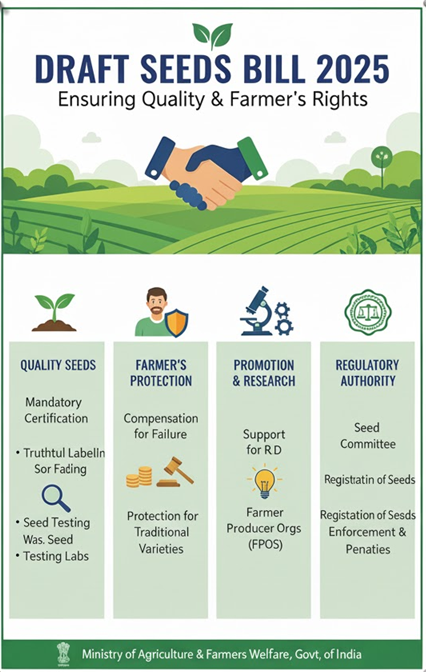 The Draft Seeds Bill aims to replace the Seeds Act (1966) and the Seeds Control Order (1983) with a modern framework for seed quality, regulation, and traceability.