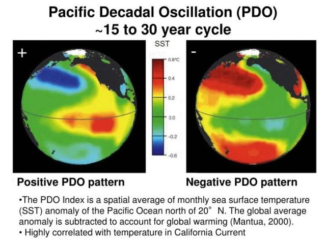 - PDO is an oceanic phenomenon like EL Nino, La Nina
